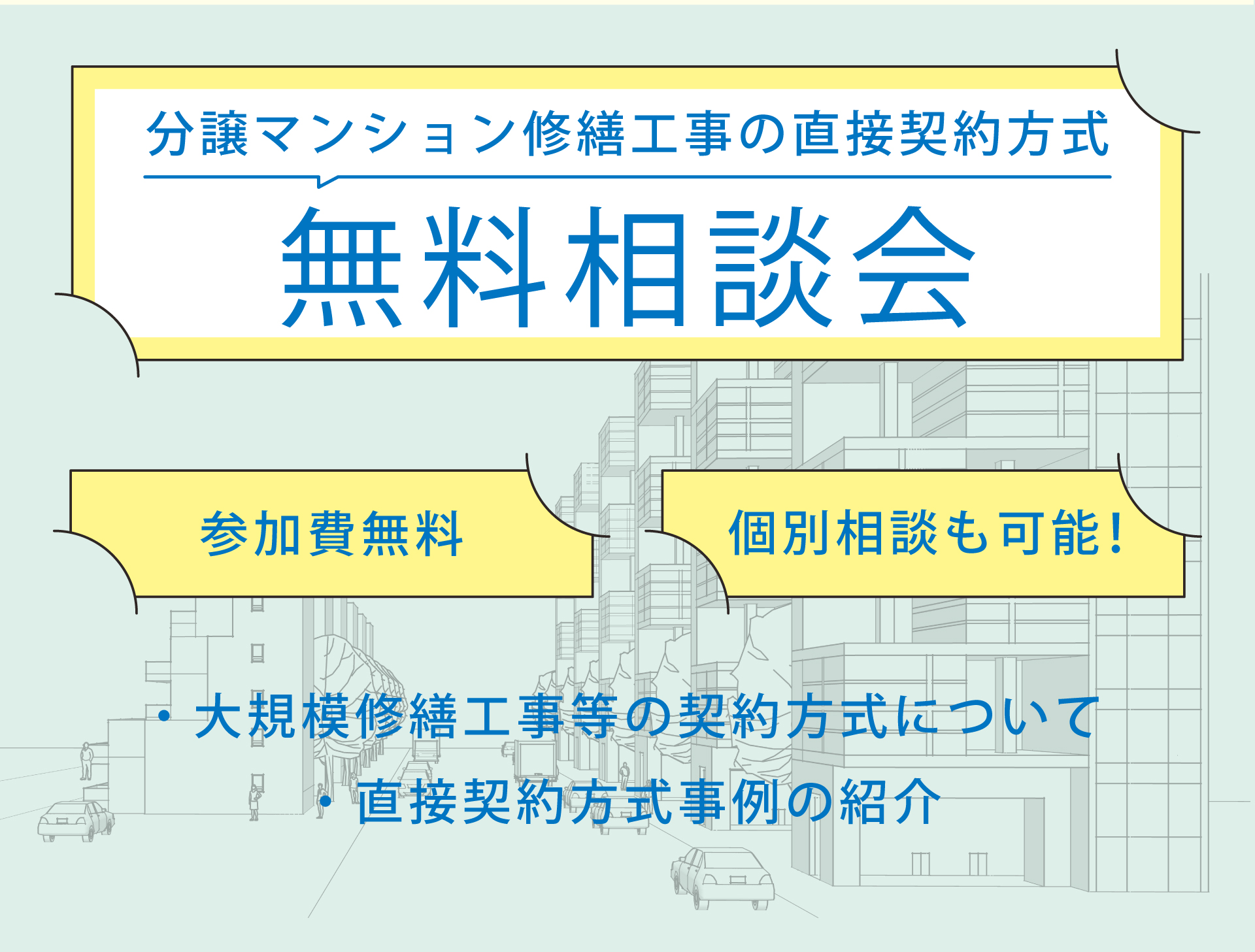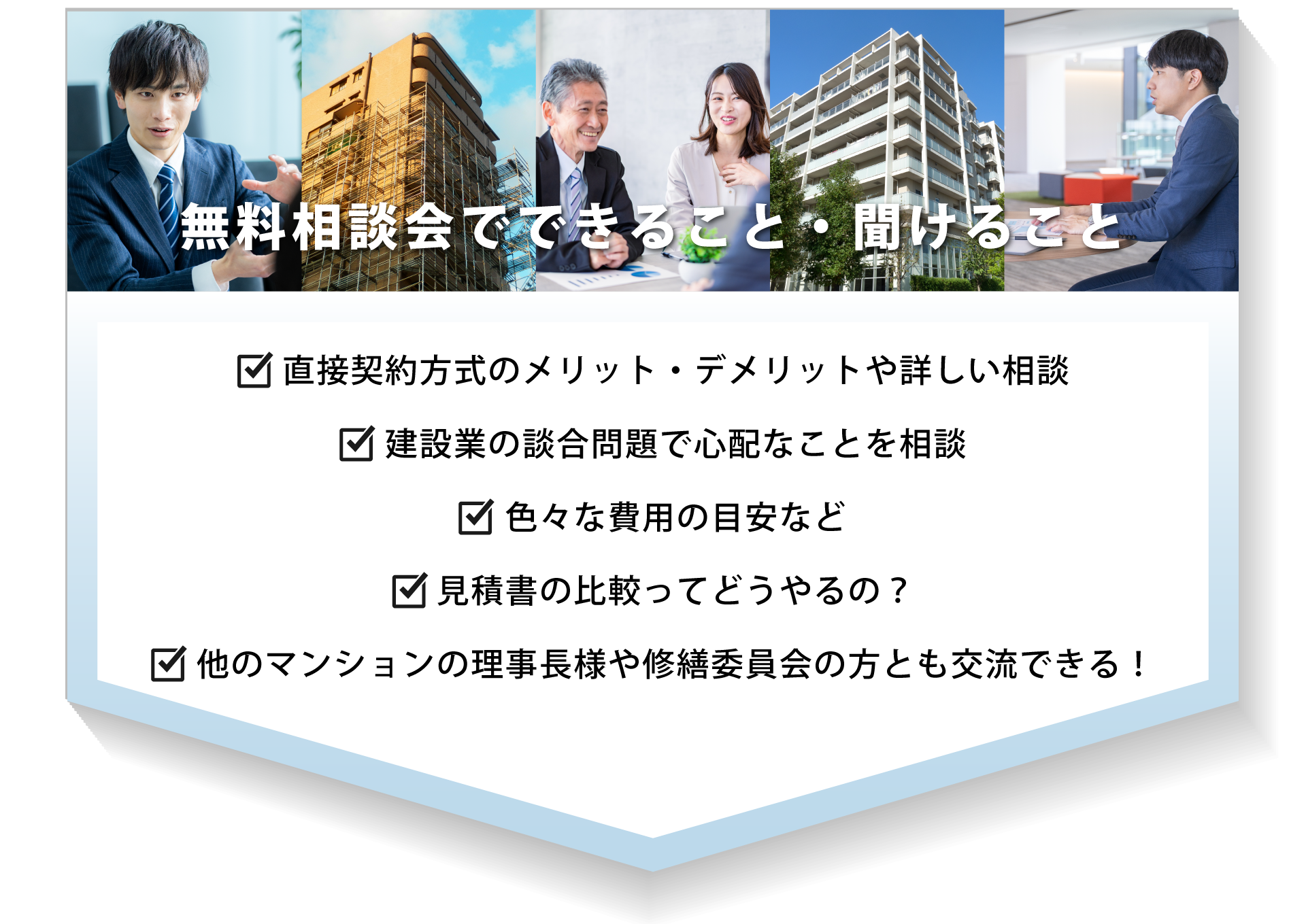 管理組合様の顧問や大規模修繕工事のコンサルティング、滞納対応などの